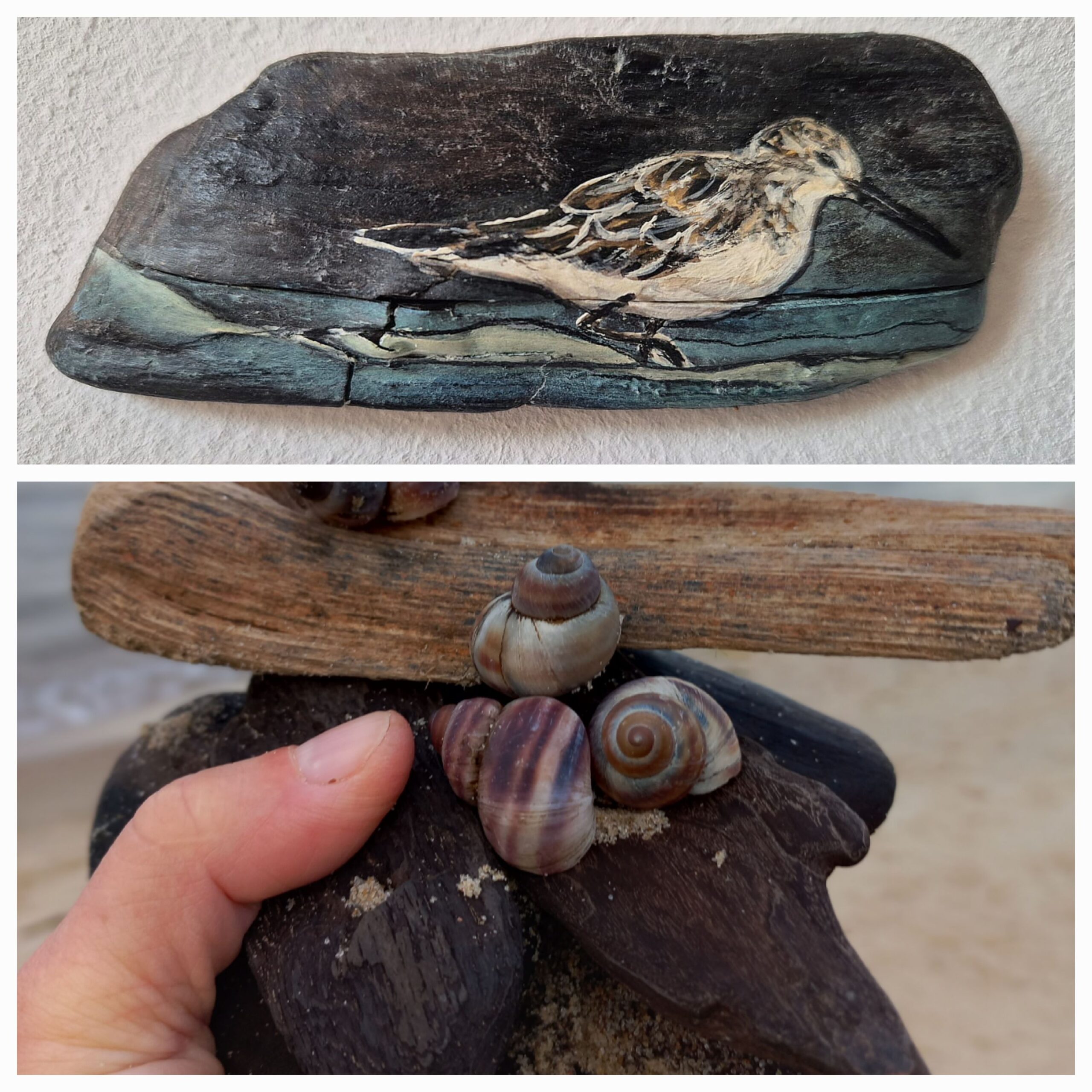 Treibholz – Kreidefarbe und Aquarell auf Holz, mit einem matten Lack auf Wasserbasis versiegelt und mit einer Aufhängung versehen