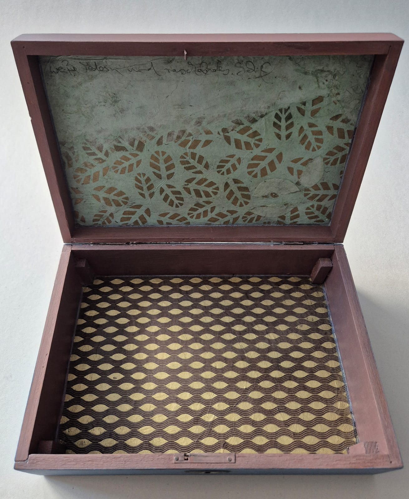 Antikes Holzkistchen – Kreidefarbe, Aquarell und handgeschöpftes Papier auf Holz, mit einem matten Lack auf Wasserbasis versiegelt