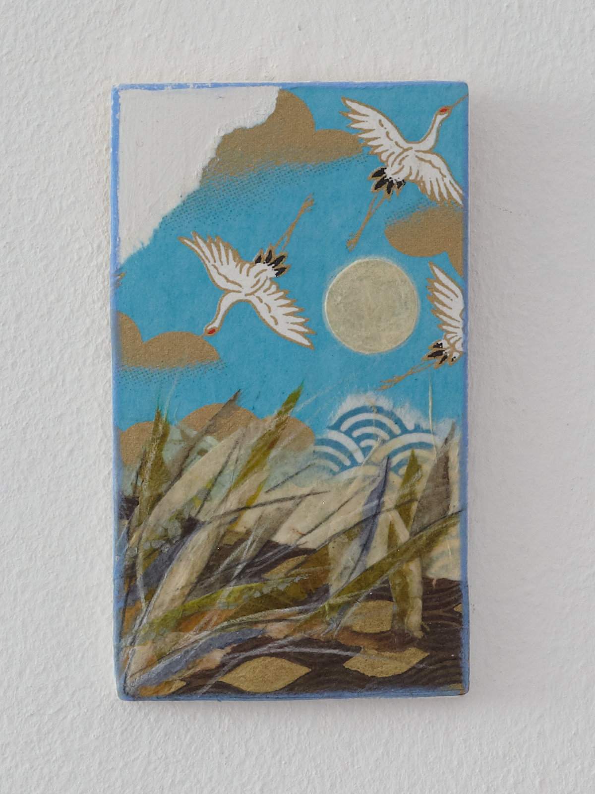 Wind im Schilf – Eine Miniaturcollage auf Holz